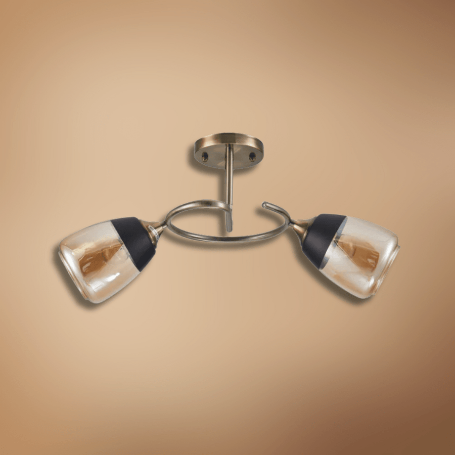 Add a touch of vintage charm to your space with the Amber 2 Lamps Black Bell Glass Antique Brass Metal Spiral Semi Flush Ceiling Light. The striking combination of black metal, antique brass accents, and amber bell-shaped glass shades creates a warm, inviting atmosphere — perfect for living rooms, bedrooms, or dining spaces.