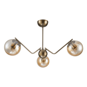 Classic Design: Antique brass finish paired with amber glass shades for a vintage-inspired aesthetic.