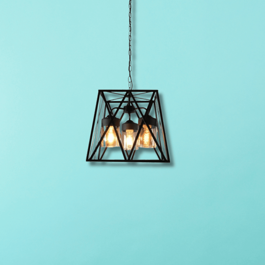 Black Metal Body Amber Cylinder Glass Cage Cuboid E27 Chandelier Ceiling Light