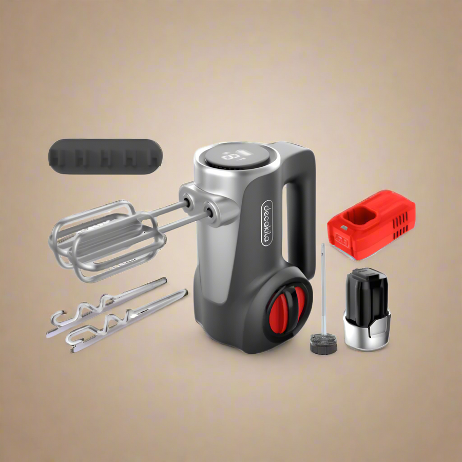 Take your baking and mixing experience to the next level with the Decakila 7-Speed Cordless Rechargeable Hand Mixer 125W – KEMX023. This powerful yet lightweight hand mixer is designed for ultimate convenience, featuring cordless operation with a 2000mAh rechargeable battery, allowing you to mix anywhere without restrictions. The 7-speed control and LED display ensure precision mixing for all your recipes, from whipping cream to kneading dough. The individual eject button makes changing attachments effortless, while the self-stand design allows for easy storage. Available in Red (KEMX023R) and Black (KEMX023B).