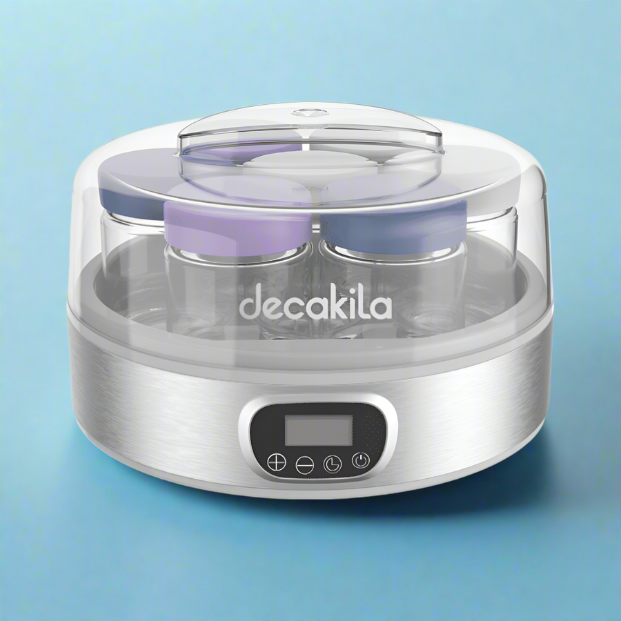 Enjoy fresh, homemade yogurt with the Decakila Yogurt Maker KEYM001W. This compact and efficient yogurt maker features seven transparent glass jars, allowing you to prepare multiple flavors at once. With a consistent warming temperature of 40±5°C, it ensures perfect fermentation for smooth and creamy yogurt every time. The LCD display provides easy operation, making it ideal for home use.