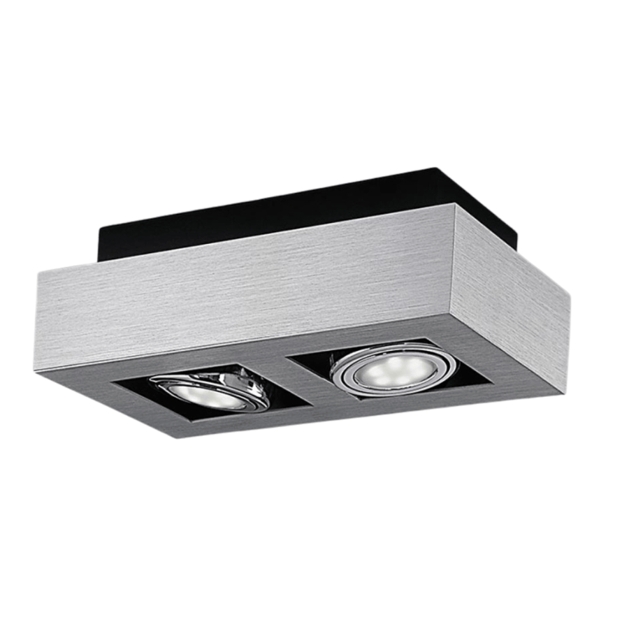 A modern rectangular LED ceiling spot featuring an integrated 5W GU10 LED module in warm white 3000K. With a sleek aluminum body measuring 250x140mm and an ultra-slim 85mm depth, it provides focused, energy-efficient task or accent lighting. The complete integrated unit offers 360 lumens of warm illumination with no bulb replacement needed.