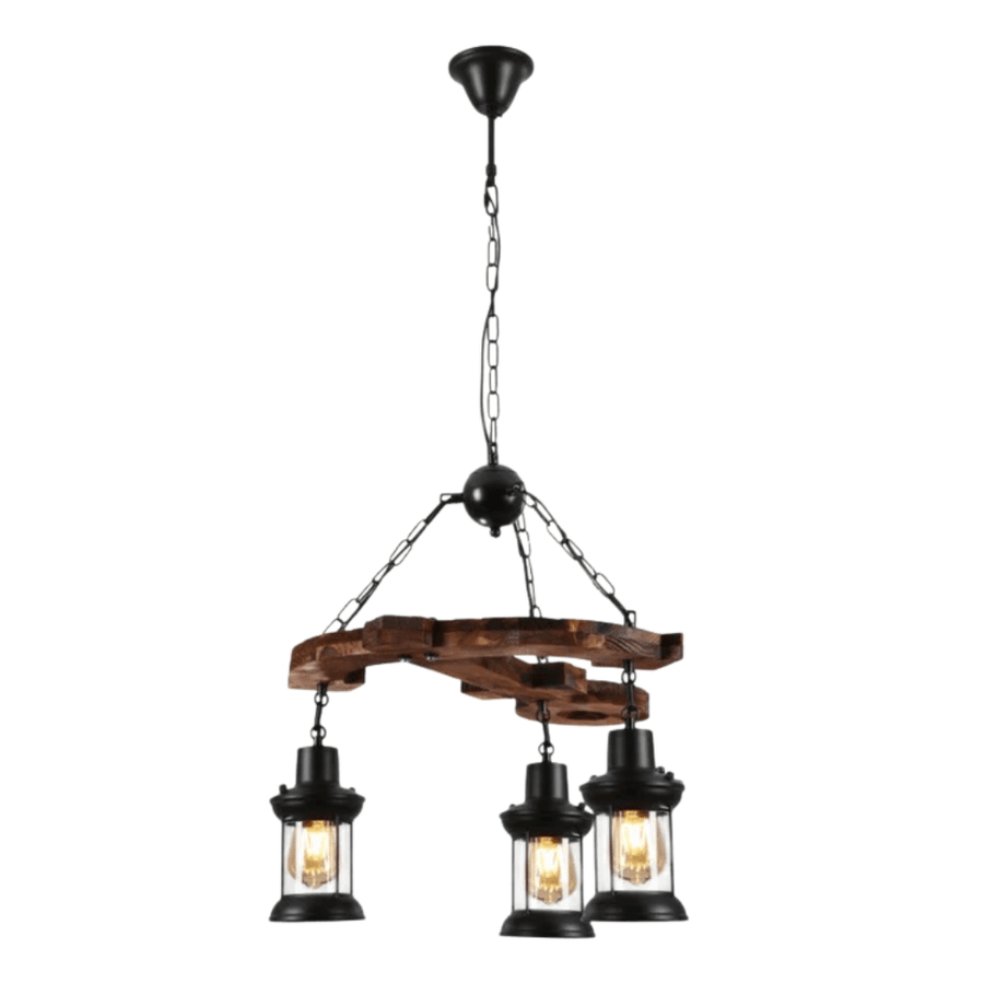 The wooden structure evokes the spirit of old boats and rustic cottages, while the industrial chain suspension adds a touch of vintage sophistication.