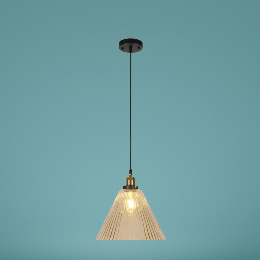 Funnel Reeded Fluted Striped Amber Glass Pendant Ceiling Light – 8618-1AM
