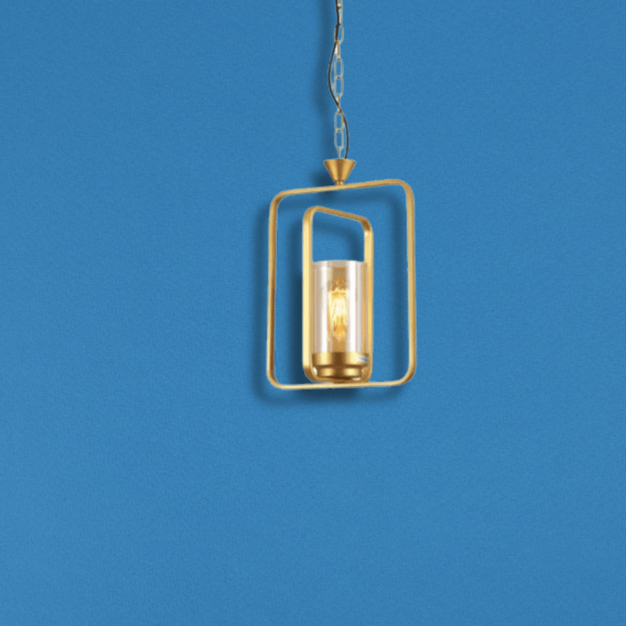 Modern Luxe Design: A minimalist gold metal frame paired with an amber glass shade for a chic, elegant look.