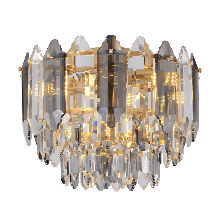 Add a touch of elegance and opulence to your space with the Golden Tiered Radiance Chandelier Ceiling Light. Featuring alternating crystal hues, this chandelier creates a captivating interplay of light and color. Its multi-tiered gold metal frame enhances its luxurious aesthetic, making it a perfect statement piece for dining rooms, living spaces, or grand entryways.