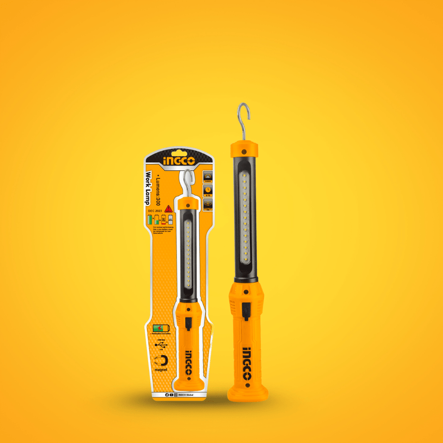 The Ingco HWLI35261 is a compact yet powerful rechargeable LED work lamp designed for hands-free usability and versatile job-site performance. Featuring a long-lasting Li‑Polymer battery and dual brightness modes, this work light delivers both high-output illumination for detailed tasks and low-level lighting for extended use. Built with practical mounting options like a stainless steel hook and magnetic base, it’s ideal for mechanics, electricians, contractors, and hobbyists.