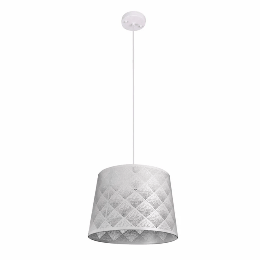 Light Effects White Argyle Classic Shade Metal Frustum E27 Pendant Ceiling Light