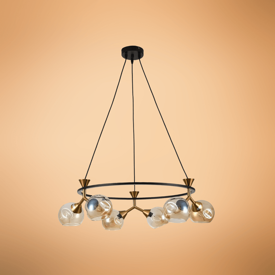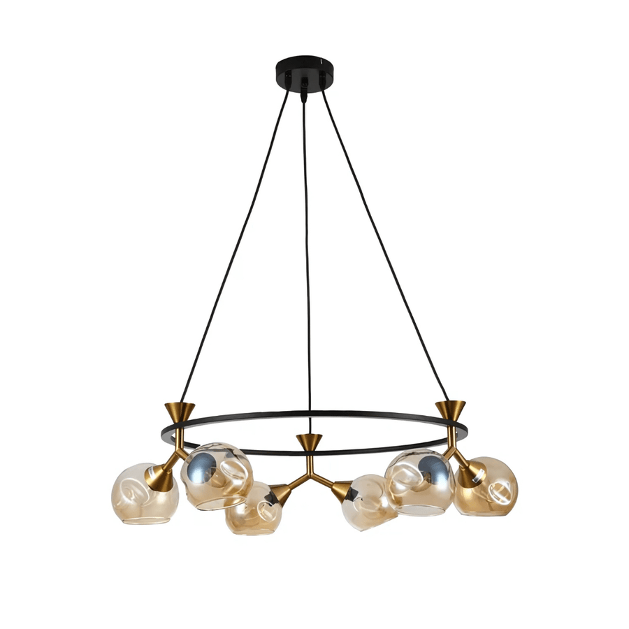 Elegant Round Design: Features a circular layout with amber glass shades that diffuse light beautifully