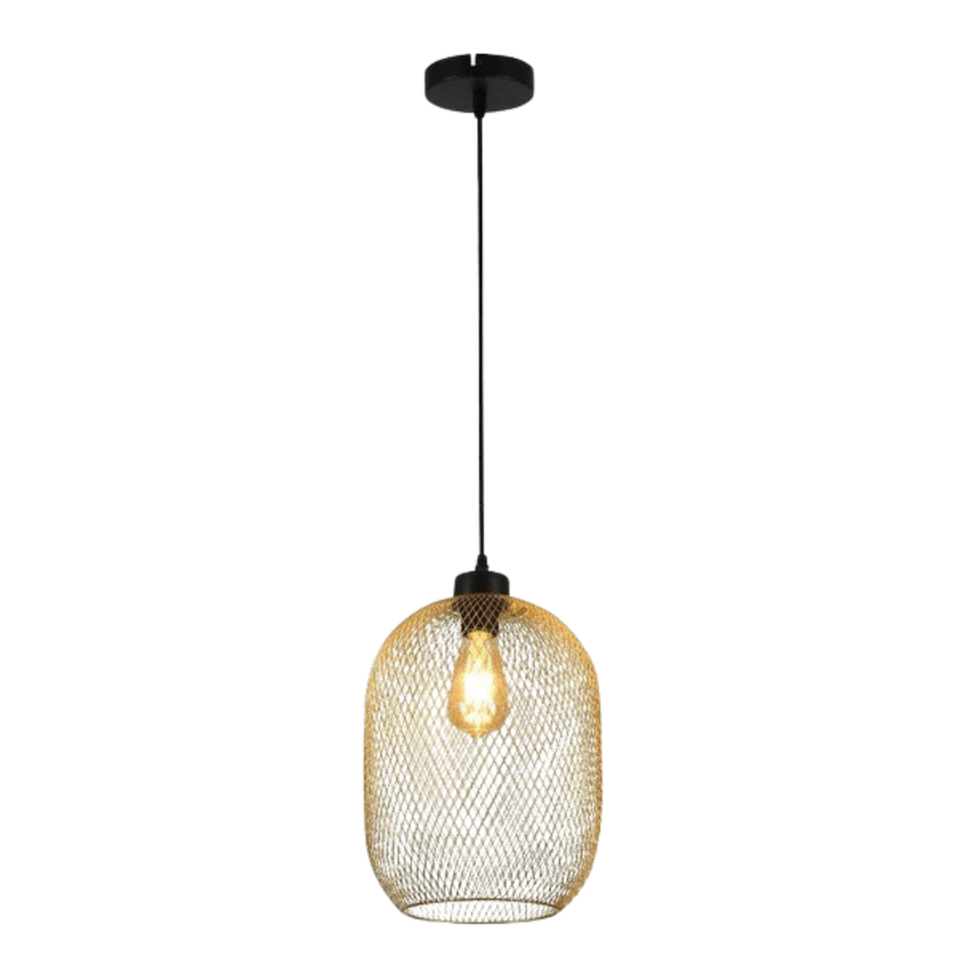 Add a touch of gold elegance to your interiors with the Mesh Gold Cage Lantern Pendant Light — a perfect blend of industrial charm and modern sophistication designed to illuminate your space with brilliance and style.