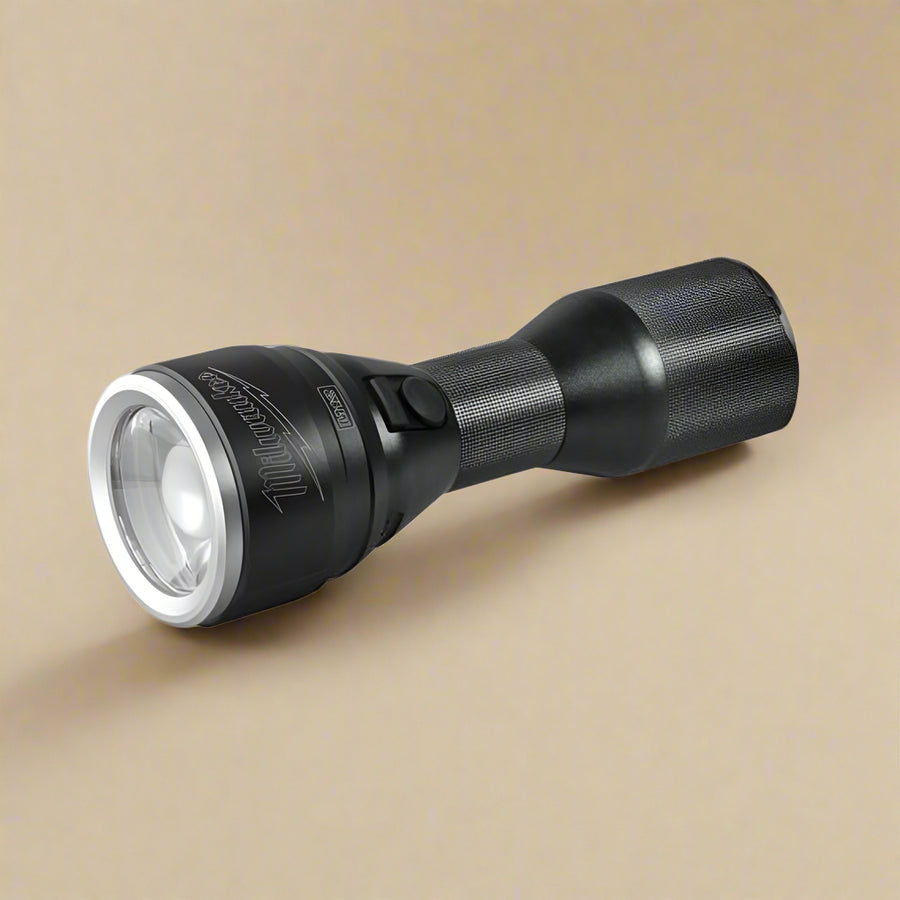 The Milwaukee M12™ LED High Performance Flashlight – M12 MLED-0 delivers TRUEVIEW™ high-definition lighting with outstanding reach and durability. Designed for professional use, it projects an intense beam up to 350 metres with a powerful 800 lumens of focused light. The adjustable sliding head lets you switch easily from flood to spot lighting, making it a versatile tool for any task. Crafted from 6000 series machined aluminum with a Type II anodized finish, this flashlight is made to endure harsh environments. It’s equipped with an impact-resistant polycarbonate lens, IP54-rated protection, and an ergonomic grip for comfortable, reliable use in any condition. Compatible with all MILWAUKEE® M12™ batteries, this flashlight is built for serious performance. Key Features TRUEVIEW™ HD Lighting: Delivers up to 800 lumens of clear, consistent light Adjustable Beam Pattern: Slide the head to switch between flood and spot modes Long Beam Distance: Illuminates up to 350 metres for long-range visibility Rugged Construction: Machined 6000-series aluminum body with impact-resistant lens Weather & Dust Resistant: IP54 rating for protection against dust and splashing water Ergonomic Grip: Contoured and knurled handle for comfortable control M12™ Fuel Gauge: Built-in battery level indicator and low battery alert Included Lanyard: Secure your light while on the move Flexible Battery System: Compatible with all Milwaukee® M12™ batteries Specifications Model: M12 MLED-0 Article Number: 4933451899 System: M12 Voltage: 12V Max Light Output: 800 Lumens (High), 325 (Low), 800 (Strobe) Beam Distance: 350 m Max Run Time with M12 B4 Battery: 5h (High), 7h (Low/Strobe) Battery Type: Li-ion (Not Included) Supplied In: Blister packaging Standard Equipment: Lanyard included Weight with Battery: 0.7 kg IP Rating: IP54 The Milwaukee M12™ LED High Performance Flashlight (M12 MLED-0) delivers a powerful, focused beam designed for professional use in low-light conditions. Emitting up to 325 lumens of TRUEVIEW™ high-definition light, it provides a bright, clear beam with a reach of over 350 meters. Built with an impact- and water-resistant aluminum body, it’s ideal for rugged jobsite environments. The flashlight features a sealed lens and head design to withstand tough conditions and is powered by any M12™ REDLITHIUM™ battery, offering extended runtime and consistent performance. Ideal for inspections, maintenance, and emergency use.