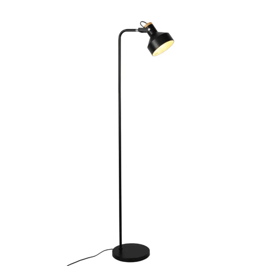 A perfect blend of modern minimalism and natural aesthetics, this adjustable floor lamp features a sleek metal frame with a wooden accent for a warm touch. The adjustable head allows you to direct light precisely where needed, making it ideal for reading, work, or ambient lighting in any room. Key Features & Benefits  Minimalist design with a sleek metal frame and wooden accent Adjustable head for focused or ambient lighting Perfect for reading corners, bedrooms, and offices Stable base ensures durability and balance Technical Specification Material: Metal frame with wooden detailing Finish: Matte black or white with natural wood Bulb Type: E27 (not included) Maximum Wattage: 40W Power Source: AC mains-powered Height: Standard floor lamp height This elegant and functional floor lamp seamlessly enhances modern, Scandinavian, and minimalist interiors while providing versatile lighting for any space.