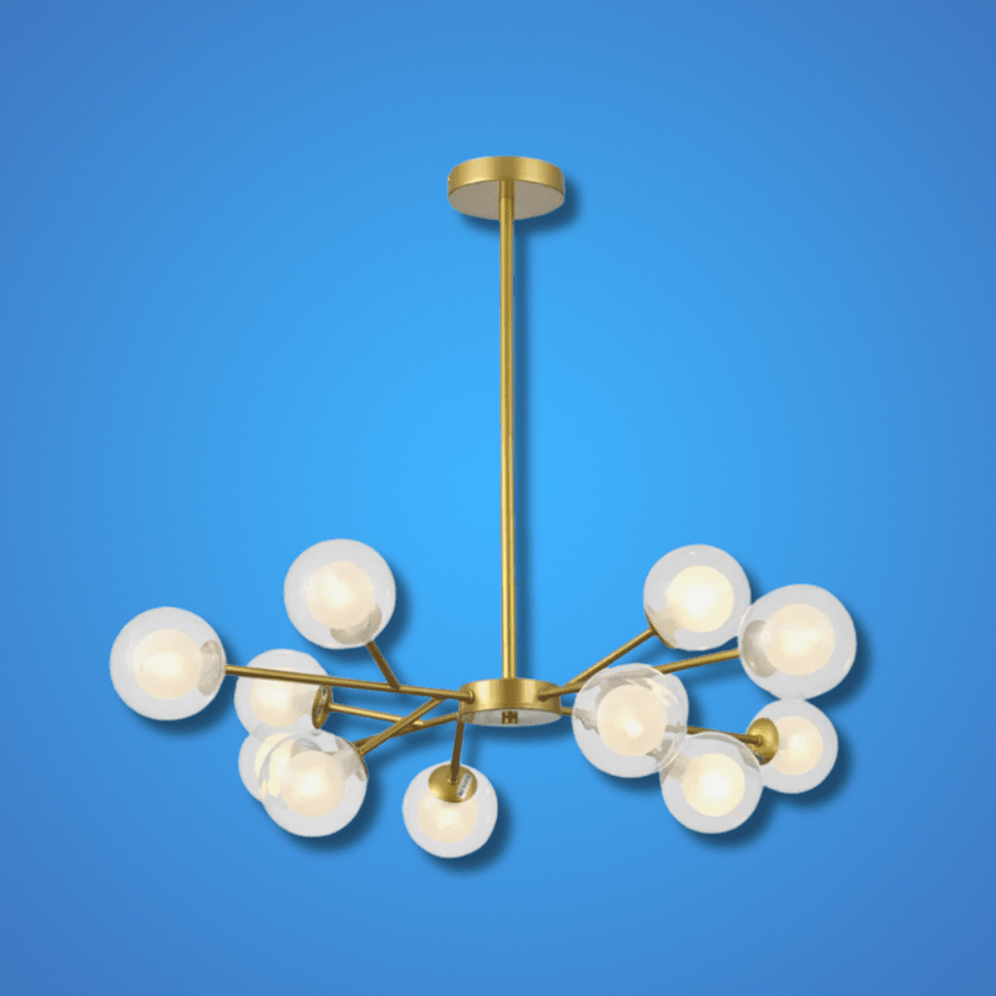 Striking Modern Design: Luxurious gold finish paired with 12 double-layered glass globes for refined elegance.