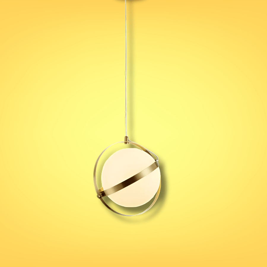 The Opal Globe Glass Gold Rings Pendant Ceiling Light is a sleek blend of modern design and timeless elegance. Featuring a frosted opal glass globe surrounded by gold-finished metal rings, this pendant light diffuses soft, ambient light, perfect for adding sophistication to your living rooms, bedrooms, dining areas, or commercial spaces like cafes and boutiques.