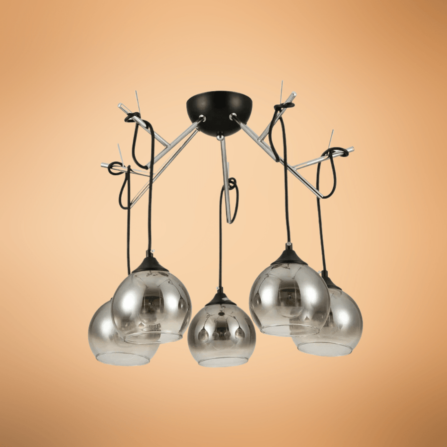 The Smoky Dome Glass Chrome 5 Lamps Twig Modern Ceiling Light is a statement lighting piece that brings a modern and artistic flair to any space. Featuring five elegantly curved arms resembling twigs, each holding a smoky dome glass shade, this ceiling light provides a balanced and stylish illumination. Its sleek chrome finish enhances contemporary and minimalist interiors, making it perfect for living rooms, dining areas, bedrooms, and offices.