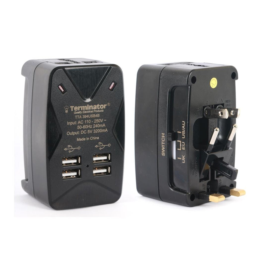 Expand your charging capabilities with the Terminator Universal Multi Adaptor featuring 4 USB ports. This adaptable accessory allows simultaneous charging of multiple devices, ensuring convenience and efficiency.