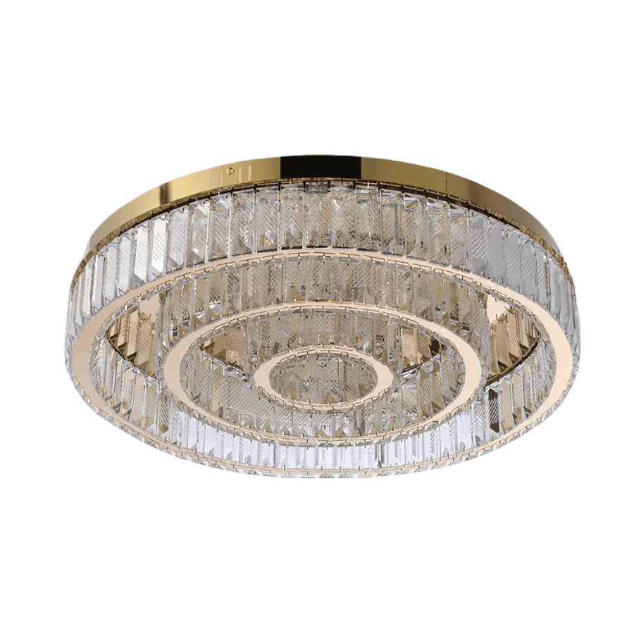 Elevate your interior with the Triple Nested Ring Crystal Flush Ceiling Chandelier Light, a sophisticated lighting fixture designed to bring a modern touch of luxury to any space. Featuring three elegantly nested crystal rings, this chandelier creates a mesmerizing lighting effect, perfect for living rooms, dining areas, bedrooms, or entryways. The included remote control allows you to adjust brightness and color temperature, offering convenience and ambiance customization to suit any occasion. Key Features: Triple nested crystal ring design for a stunning modern look Adjustable brightness and color temperature via remote control Energy-efficient 48W built-in LED lighting Flush-mounted design, ideal for standard or low ceilings Premium-quality crystals that enhance light refraction for a dazzling effect Durable metal frame for long-lasting performance Technical Specifications: Power: 48W Light Source: Built-in LED Dimming: Yes, via remote control Color Temperature: Adjustable (Warm White, Neutral White, Cool White) Material: High-quality crystal and metal Installation: Flush-mounted ceiling fixture Application: Indoor use (residential & commercial spaces) Upgrade your space with the Triple Nested Ring Crystal Flush Ceiling Chandelier Light, a stunning fusion of elegance and modern technology, designed to provide timeless luxury and personalized lighting control.