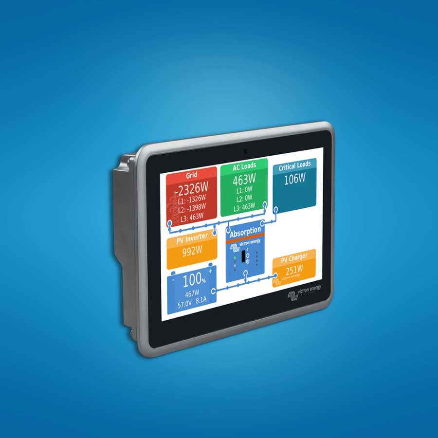 It combines high processing power, full connectivity, and an intuitive interface to monitor and control your entire power setup. Whether you access it directly via its screen, through the VictronConnect app, or remotely via Victron Remote Management (VRM), the Ekrano GX gives you seamless oversight and control.