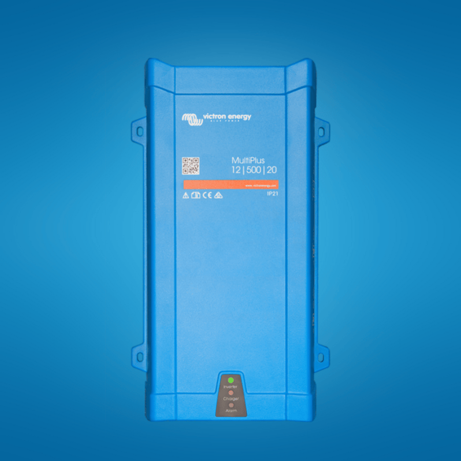 True UPS Function: <20ms switchover keeps critical devices running during grid failure Remote Monitoring: Monitor and control via VRM portal (with Color Control GX or Venus GX) PowerAssist: Boosts weak shore/generator power using battery energy when needed PowerControl: Prevents generator overload by managing charging relative to other loads Eco-Friendly Search Mode: Reduces no-load consumption by up to 70% High Surge Capacity: 900W peak power for motor-driven tools and LED converters Programmable Relay: Customizable for alarms or control functions Technical Specifications Model: PMP121500000 Inverter Power: 500VA / 430W continuous (25°C) Peak Power: 900W Charger Output: 20A adaptive with absorption (14.4V), float (13.8V), and storage (13.2V) Input Voltage: 12V DC (9.5-17V range) AC Input: 187-265V AC, 45-65Hz Efficiency: Up to 90% No-Load Consumption: 6W (2W in Search Mode) Dimensions: 311mm (H) x 182mm (W) x 100mm (D) Weight: 4.4 kg The Victron MultiPlus 12/500/20 packs professional-grade performance into a compact, all-in-one unit. Its seamless UPS functionality, smart charging, and remote monitoring capabilities make it the ultimate plug-and-play power solution for small mobile and backup systems. Trust Victron’s engineering for reliability that fits in tight spaces without compromising on features